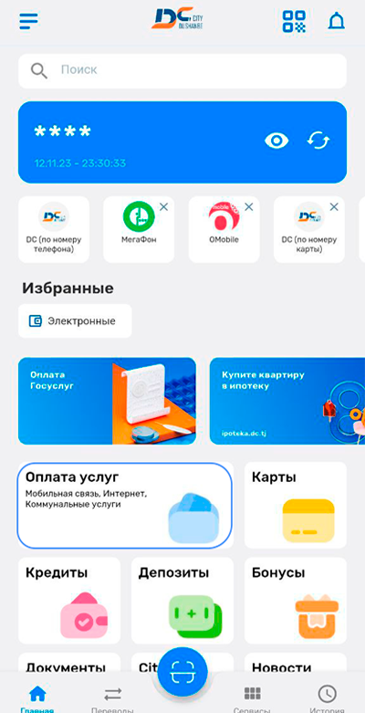 1.Выберите пункт «Оплата услуг»